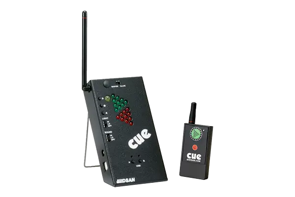 Le Pavlov Perfect Cue Mini comprend une” unité de régie” et une télécommande HF à 2 boutons (Avant + Arrière) et un puissant pointeur laser rouge opérationnel sur les projections.